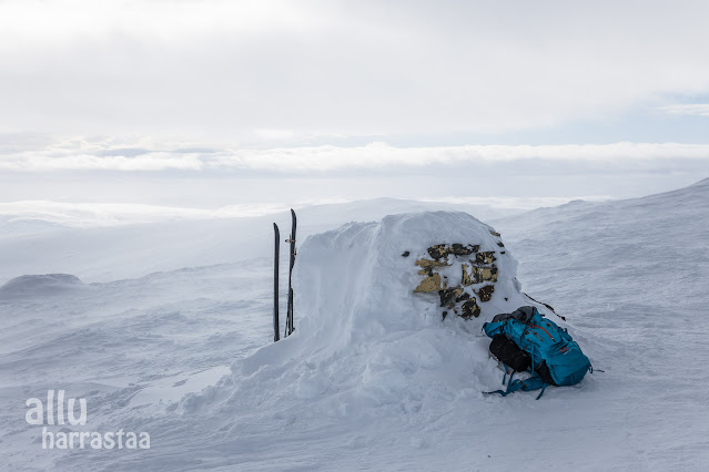 Kolmanneksi, Haltin reitillä (ja Käsivarren erämaassa muutenkin) on kohtuullisen tiivis tupaverkosto, johon voisi tukeutua huonon sään tai muun pulman sattuessa. Tikkureittiä tosin hiihtelisi huonommallakin näkyvyydellä, sillä siinä ei tarvitse juuri suunnistamisesta huolehtia. Oikein kovassa kelissä toki olisi pysyteltävä paikallaan.